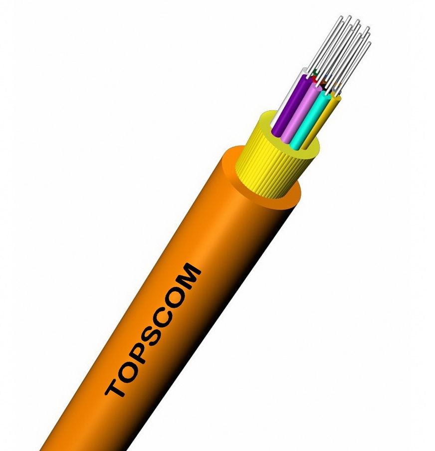 Topscom Fiber Optic Indoor Distribution Cables consists of 2 to 12 strains of 900mm tight buffered fiber, surrounded by aramid yarn (Kevlar) strength members with either PVC or LSZH material jacket. Distribution cables are ideal for LAN backbone and horizontal cabling applications. It is a more cost effective solution to achieve higher data rates over longer distances. Halogen free LSOH jacket ensures that fire does not spread through the cables, and no corrosive and toxic gases will arise.